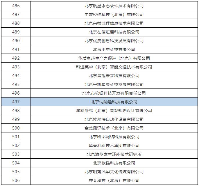 北京訥納漁科技有限公司,在列北京市2021年認定的高新技術企業備案的第三批2186家企業,其中教育類有40家