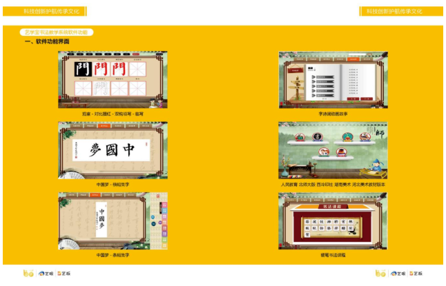 國作登字-2021-F-00110588、配套硬件產品:藝板繪畫屏、藝學寶書法臨摹全貼合屏、藝學寶課堂采集設備在線基于課標、教材的備課和教學案制定,美術繪畫課、欣賞課、雕塑課、設計課、手工課、電腦數字繪畫課等的課堂授課;