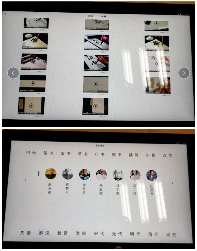書法教學系統:先秦至近代高清碑帖資源放大或縮小,摹帖按年代、書體、作者自由檢索;內置書法文化知識,書法發展簡史、歷代作品賞析、歷代書論、書法家故事;字帖排版、字帖檢索、視頻展現、動畫演示、單鉤雙鉤的轉換、書體混排、格數變換、一鍵推送推送至學生端臨摹屏;學生作品展示、圈注點評、保存記錄、對照;集字功能,橫排、豎排、扇面、斗方、條幅一鍵推送至學生端實現集字創作和臨摹。