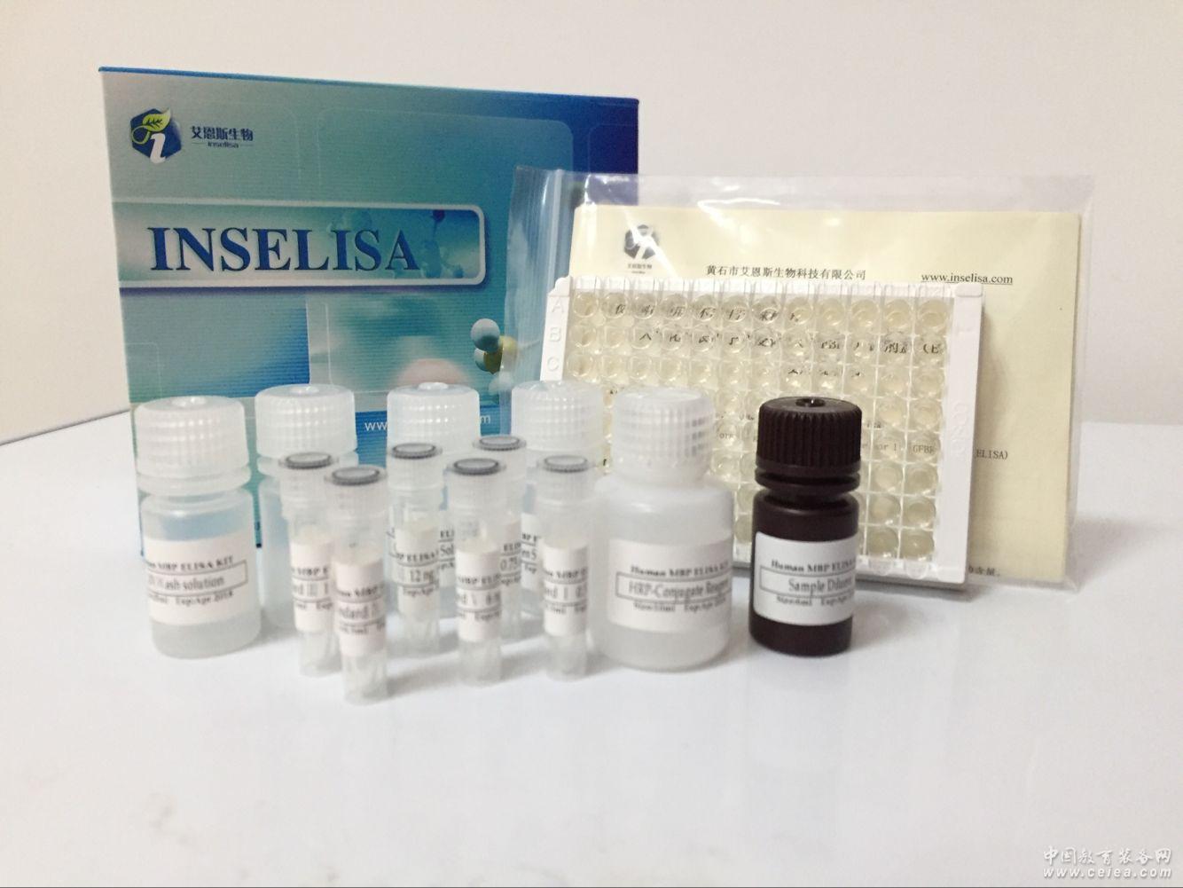 【檢驗原理】 本試劑盒采用雙抗體夾心酶聯免疫吸附試驗(ELISA)。在預包被抗大鼠5羥色胺(5-HT)抗體(固相抗體)的微孔酶標板中,加入大鼠5羥色胺(5-HT)校準品和待測樣本,再加入另一株HRP標記的抗大鼠5羥色胺(5-HT)抗體(酶標抗體),經過溫育與充分洗滌,去除未結合的組分,在微孔板固相表面形成固相抗體-抗原-酶標抗體的夾心復合物。加底物A和B,底物在HRP催化下,產生藍色產物,在終止液(2M 硫酸)作用下,最終轉化為黃色,在酶標儀上測定吸光度(OD值),吸光度(OD值)與待測樣品中大鼠5羥色胺(5-HT)的濃度正相關。擬合校準品曲線,可以計算出樣本中大鼠5羥色胺(5-HT)的濃度。