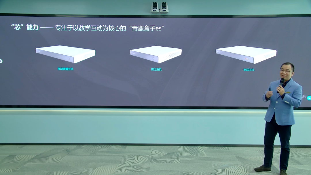 在緊接著的直播中,青鹿研究院院長廖力先生圍繞主題“科技啟迪教育智慧”向大家進行闡述。通過對國家大事件的回顧,可以明確當前我國在教育方面聚焦課程質量、教學管理,推進系統性的改革。隨著社會的飛速發展,教育現代化的發展趨勢越來越顯著,主要體現在教育要立德樹人,從學革命到質量革命,推進人才培養模式變革。而當前,青鹿為教育發展提供支持線上、兼容線上線下混合教學的信息化產品。新時代,教育信息化發展面對著新的機遇與新的挑戰。在機遇與挑戰并存的階段,青鹿提出了新思路,推出了一檔以專業視角解構建設思路、規劃方案的中立欄目——《大家講堂》,旨在通過“大家”的分享、交流和碰撞,啟迪從業者,傳遞創新價值。廖力先生強調青鹿期望持續地請大家來講,通過大家關心的話題,講給大家聽。而要在教學上做到這一切,使用青鹿專注于教學互動為核心的“青鹿盒子系列產品”將事半功倍。當前“青鹿盒子系列產品”有互動錄播主機、研討主機、物聯主機三款明星產品。三款產品是基于教學過程中不同方面的需求進行研發的,例如,互動錄播主機基于視頻互動的教學;研討主機面向小組的研討式、探究式、自主分享式學習等。面對新時代的教育,青鹿提出新方法——依托校園信息化構造教學場景,采用新模式——整體方案全面升級,使用新科技——全過程數據自動記錄,整體構建有機融合的信息化教學環境,利用科技賦能創新教學,最終達到從科技到智慧的目的。