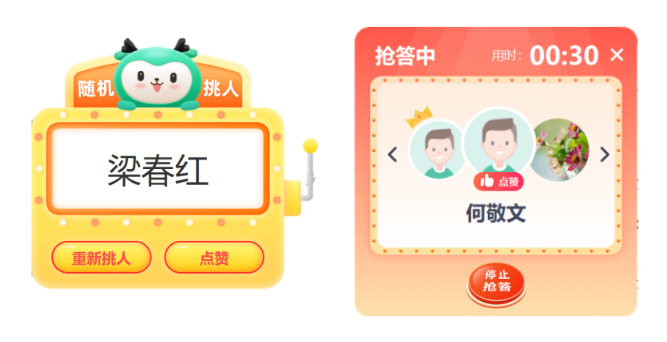 教師個人點答,往往存在著“主觀”因素。教師可以使用“隨機挑人”的點答方式,讓每個學生都擁有同等的回答機會,同時“隨機”也更具有代表性。