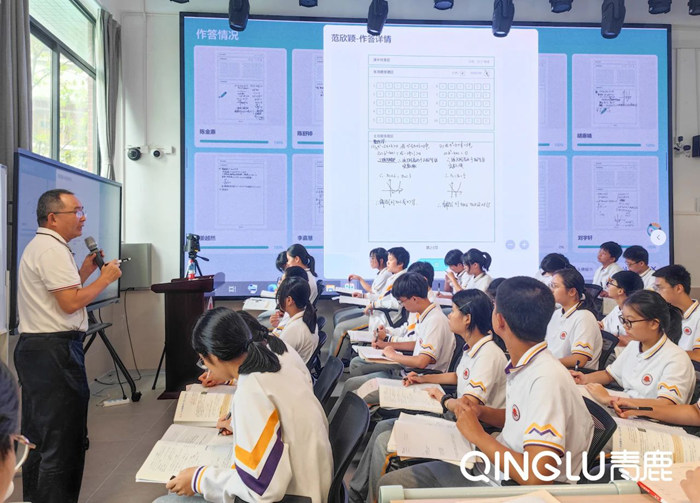在教學(xué)示范課環(huán)節(jié),惠州市第一中學(xué)余軍老師精心呈現(xiàn)了一節(jié)主題為《二次函數(shù)與一元二次方程、不等式》的初高中銜接示范課,課堂中使用青鹿智慧紙筆系統(tǒng),同步展示學(xué)生課堂練習(xí)的作答情況,并及時(shí)觀察和點(diǎn)評(píng),將“以學(xué)生為主體,教師為主導(dǎo)”的新課改理念貫穿于整堂課,將信息技術(shù)與傳統(tǒng)教學(xué)相融合!