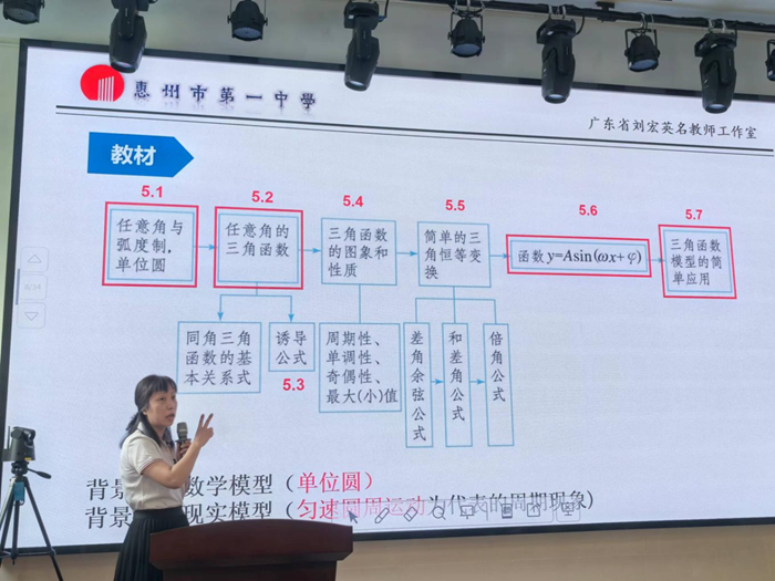 廣東省劉宏英名教師工作室主持人劉宏英進(jìn)行了主題為《學(xué)科融合視角下的“三角函數(shù)”單元整體教學(xué)》的講座。