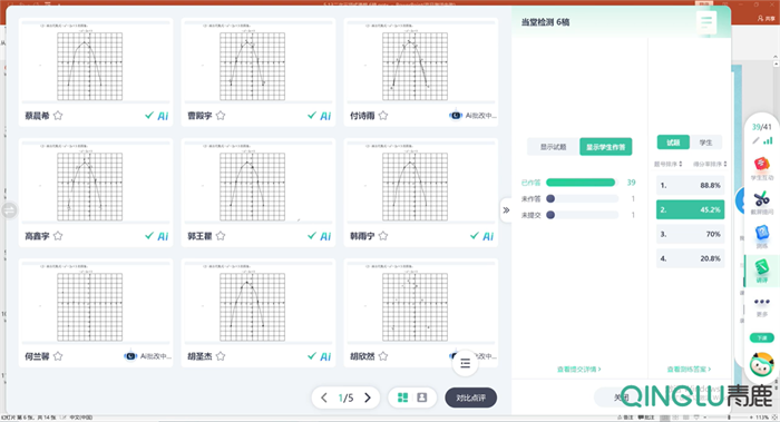 隨后,曹老師通過青鹿智慧紙筆系統(tǒng)推送個性化隨堂檢測,學(xué)生使用智慧筆完成作答后,系統(tǒng)進(jìn)行AI批改,快速生成答題統(tǒng)計,全班正確率一目了然,為精準(zhǔn)教學(xué)提供實時數(shù)據(jù)支撐。