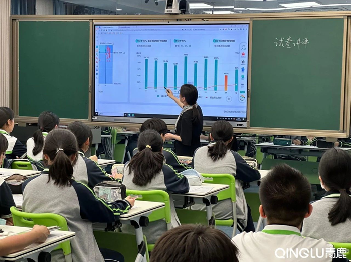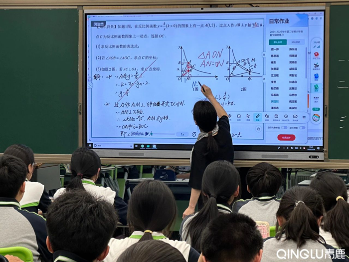 活動現(xiàn)場,數(shù)學組學科帶頭人沈秋萍老師運用青鹿智慧紙筆技術(shù)開展“試卷分析課”。整堂課以“整體思想”為引領(lǐng),層層深入剖析分式混合運算與分式方程應(yīng)用兩大核心知識點,并巧妙引出反比例函數(shù)意義的理解,展現(xiàn)出清晰的知識脈絡(luò)與思維進階路徑。