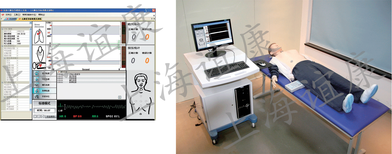 產品詳細介紹雙側瞳孔正常與散大對比。手動模擬瞳孔狀態,正常、縮小,模擬人會同步改變 可檢測到頸動脈搏動,手動模擬頸動脈無搏動、搏動較弱、搏動較強 氣道管理:標準口、鼻氣道插管,逼真的口腔、氣道(鼻、咽、喉、氣管等)和食管等結構,支持仰頭、抬下頜、牙齒接受力報警。還可練習吸痰、吸氧。 院前急救訓練評估功能 手臂靜脈注射:手感真實。手臂靜脈包括:頭臂靜脈、手背淺靜脈 1.靜脈分布與真實相同。 2.進針有明顯落空感,并有回血產生 3.靜脈血管和皮膚同一穿刺部位可經受幾百次穿刺不滲漏 4.皮膚和血管可更換 肌肉注射: 可在大腿外側肌練習肌肉注射: 1.可真實注入藥物 2.模塊可拿出,捏干水。 3.同一部位可經受幾百次反復穿刺 4.模塊可更換 控制面板按鍵操作方便,便于切換各項操作界面,調節音量,修改各項參數,如CPR考核參數、呼吸頻率、瞳孔狀態、頸動脈搏動等 可清除CPR考核參數中日期和學號 支持學生成績的打印,打印內容包括學員資料、人工呼吸、心外按壓波形圖 氣管插管 1.可開放氣道,電子監測氣道狀態 2.模擬人自帶感應系統,開放氣道正確時,主界面動畫還顯示氣道開放狀態。 3.阻塞狀態可模擬喉部痙攣和喉頭水腫程度,練習困難氣管插管 4.當導管插入到口腔、食管和氣管時,電子顯示插管狀態。界面會顯示插管錯誤狀態: 1)當導管插入到食管時,電子顯示插管位置,提示文字變紅色。 2)當導管插入氣管口時,電子顯示插管位置,提示文字變黃色。 4.判斷氣管插管成功方法:方法一:吹氣,觀察胸廓是否起伏,方法二:電子顯示屏顯示導管已插入氣管內 心肺復蘇 1.設有訓練和考核模式 2.訓練模式下全程語音提示 3.時間表示:當吹氣或按壓動作后,計時開始 4.電子監測氣道狀態,氣道開放后,氣道口變成綠色。 阻塞狀態可模擬喉部痙攣和喉頭水腫程度。 5.模擬人自帶感應系統,在模擬人上做真實操作時,主界面能夠顯示監測瞳孔狀態、觸摸頸動脈和病人昏迷和蘇醒狀態 6.人工呼吸方式:可進行口對口人工呼吸,呼吸器對口人工呼吸 7.電子監測吹氣量正確、錯誤次數和錯誤原因的次數。 8.電子監測按壓深度正確、錯誤次數和錯誤原因的次數。 9.主界面具有同步波形,學生進行操作時,能夠進行實時電子監測吹氣量大小和按壓深度。 10.電子提示心外按壓頻率 11.自動統計操作正確率 12.自行設定CPR參數:CPR操作周期、吹氣量大小、按壓深度等,考核成績通過此設置進行評估 13.打印成績單 14.在規定的時間內完成操作,且正確率符合前期設定參數,搶救成功,瞳孔縮小,頸動脈自主搏動,FALSH顯示“我蘇醒了”。 除顫和起搏訓練:模擬人可從ECG模擬器上獲取心率,并可接真實的臨床監護儀,使用臨床的除顫或起搏設備進行除顫和起搏訓練,模擬人心率可發生相應的生理變化。 心電監護功能:可進行模擬心電監護功能訓練,也可與自備的真實心電監護儀配套使用,實現真實心電監護。 真實除顫起搏器:與自備的真實除顫起搏器配套使用,可進行真實除顫起搏 標準配置: GD/ALS750 GD/XD1000A心電圖發生器 GD/CC999A除顫轉換器 可選配件: GD/J880模擬心臟除顫起搏器 GD/AED99F自動體外除顫儀 真實心臟除顫起搏器 |