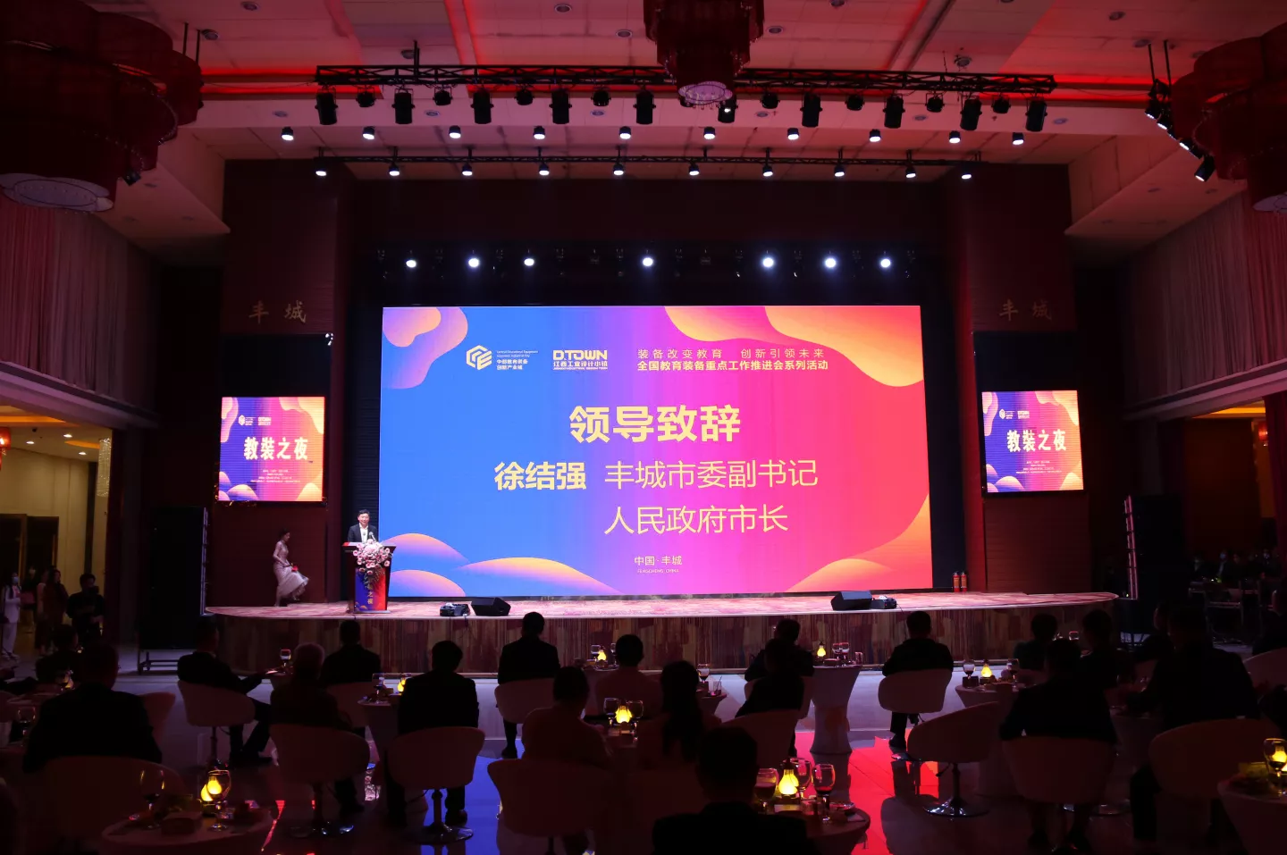 10月26日晚,國內首屆“教裝之夜”,在龍津湖酒店豐城廳盛大舉行。教育部教育裝備研究與發(fā)展中心主任曹志祥、教育部教育裝備研究與發(fā)展中心副主任趙憲志、中國工業(yè)設計協(xié)會常務副會長趙衛(wèi)國,豐城市委書記李曉楚、市長徐結強等領導出席活動。