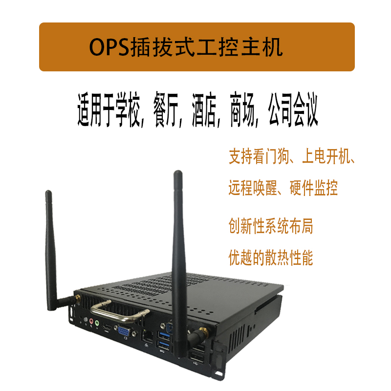 產(chǎn)品詳細(xì)介紹本產(chǎn)品是一款超薄的OPS 整機,基于 Intel 第5代Mobile U系列超低功耗平臺的 CPU,支持 WinXP、Win7、Win8、Win10 和 Linux 等操作系統(tǒng); 整機采用合金材質(zhì)并做陽極黑色氧化,外型小巧、超薄、結(jié)構(gòu)簡單,I/O和擴展接口豐富,且配備OPS插槽,是一款為電子教育白板和會議白板量身打造的產(chǎn)品。 ●產(chǎn)品規(guī)格 主要規(guī)格 處理器 Intel 6/7 th Generation Core™ i3/i5/i7 LGA1151 內(nèi)存 1* SO-DIMM 16GB DDR4內(nèi)存插槽 存儲 1*Msata SSD,1*SATA標(biāo)準(zhǔn)接口 Wifi 1*WIFI Module support 802.11b/g/n+2.5db雙增益天線 視頻 Graphics Intel HD Graphics 接口 1 個 HDMI Port(最大支持分辨率: 4096x2160) 1 個 DP Port(最大支持分辨率:4096x2160) OPS 擴展槽,1 路 HDMI 信號輸出 網(wǎng)絡(luò) 1 個 10/100/1000Mbps 網(wǎng)絡(luò)接口,支持網(wǎng)絡(luò)喚醒 音頻 Intel HDMI HD Audio Realtek 集成6聲道音效ALC662聲卡芯片 1 × LINE-OUT & MIC-IN USB 速率 USB3.0 5Gb/s 和 USB2.0 480Mb/s (理論值) 接口和插針 主機前置4個USB3.0 Port, 2 個USB2.0 Port OPS 擴展槽,有 2 個 USB3.0 , 2 個 USB 2.0 電源接口 DC-Jack和OPS子卡供電接口,12-19v DC 電壓輸入 尺寸規(guī)格 195*180*42mm(可選30mm/40mm厚度機殼) 操作系統(tǒng) Windows WinXP/Win7/Win8/Win10 其它 Unix/Linux 工作環(huán)境 溫度 -10~50℃ 濕度 0~85%RH