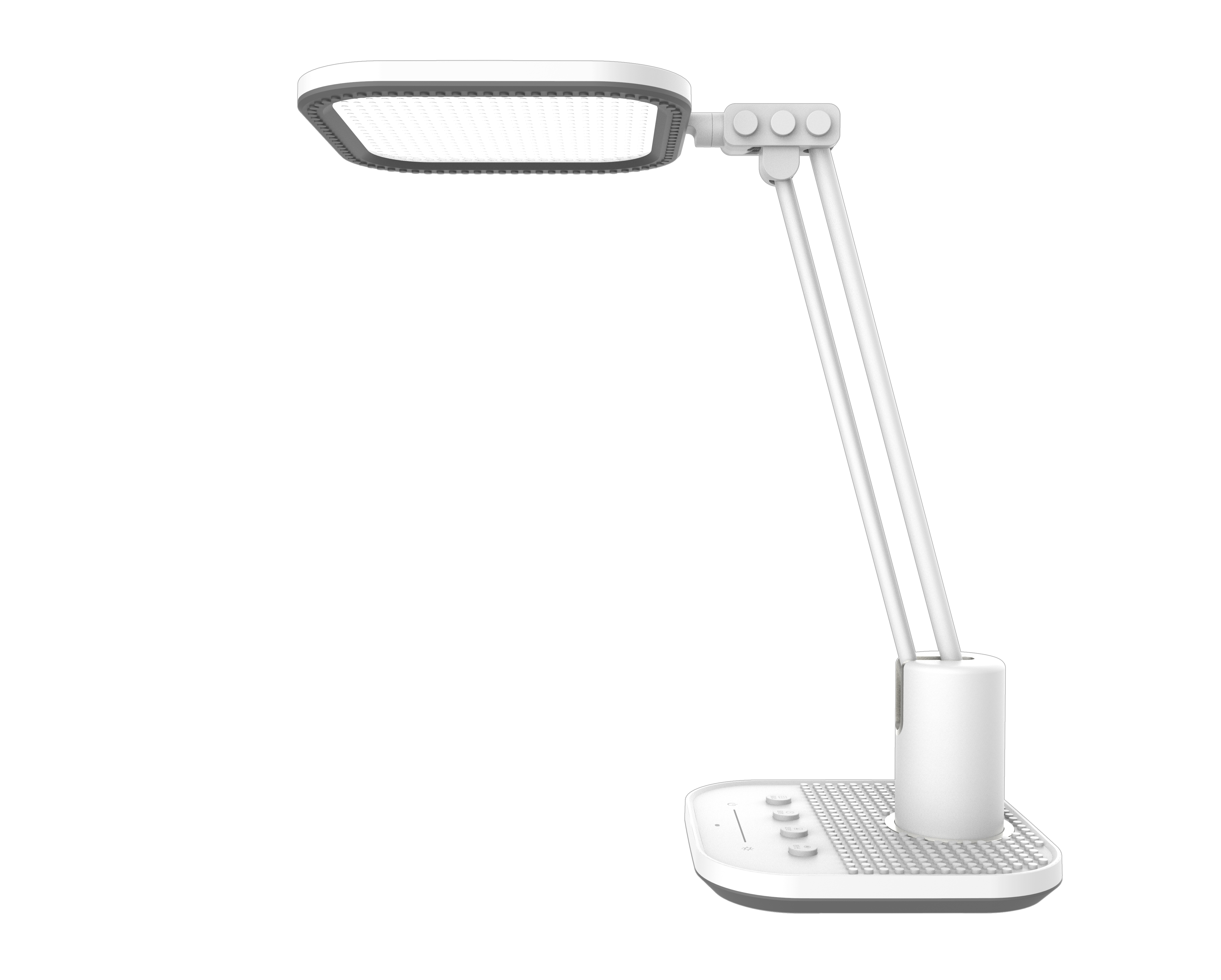 功率:13W 光通量:870lm 光效:66.9lm/W 功率因數(shù):0.5 色溫:3000-5000K 額定顯指:95 頻閃深度:1.6% 藍(lán)光危害:RG0 色容差:低于0.7 主要功能:定時休息,自動感光,動態(tài)調(diào)光,眼保健操 技術(shù)及工藝創(chuàng)新要點(diǎn): 美的樂享臺燈采用自主外觀、結(jié)構(gòu)、電控專利設(shè)計,產(chǎn)品整體操作方便,可多方向調(diào)角度。產(chǎn)品整體光電色、眩光、壽命等性能優(yōu)秀。 相對于市面上常見“雙桿”工藝技術(shù),美的樂享臺燈主體采用“防滑”轉(zhuǎn)軸結(jié)構(gòu)工藝設(shè)計,轉(zhuǎn)動關(guān)節(jié)部分壽命較優(yōu)。 燈光控制采用自主設(shè)計的燈光AI智能算法,使用戶在每個時間段都能感受到燈光的自動調(diào)節(jié),有利于保護(hù)視力。 獲獎、專利情況: 外觀專利:(已授權(quán)) 專利號:ZL201930731951.X