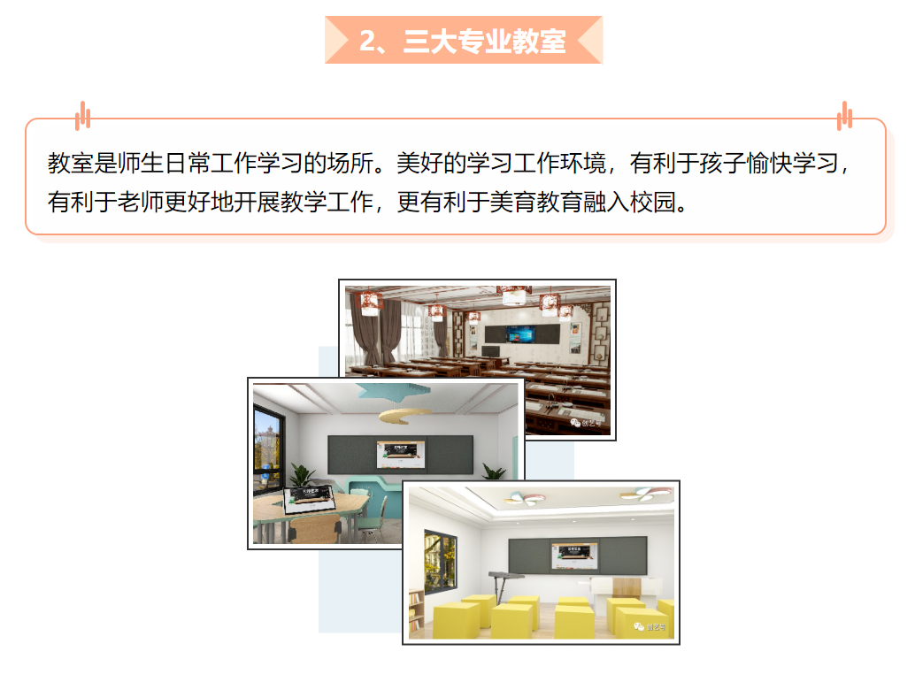 區域美育整體解決方案。創藝號美育綜合建設方案,做到“三建設,三提升”,建設美育創新型課程模式,提升區域整體教學能力;建設美育發展性評價體系,提升學生藝術綜合素養;建設美育專業化場地課程,提升學校優質特色發展,有效服務美育進校園、進中考。