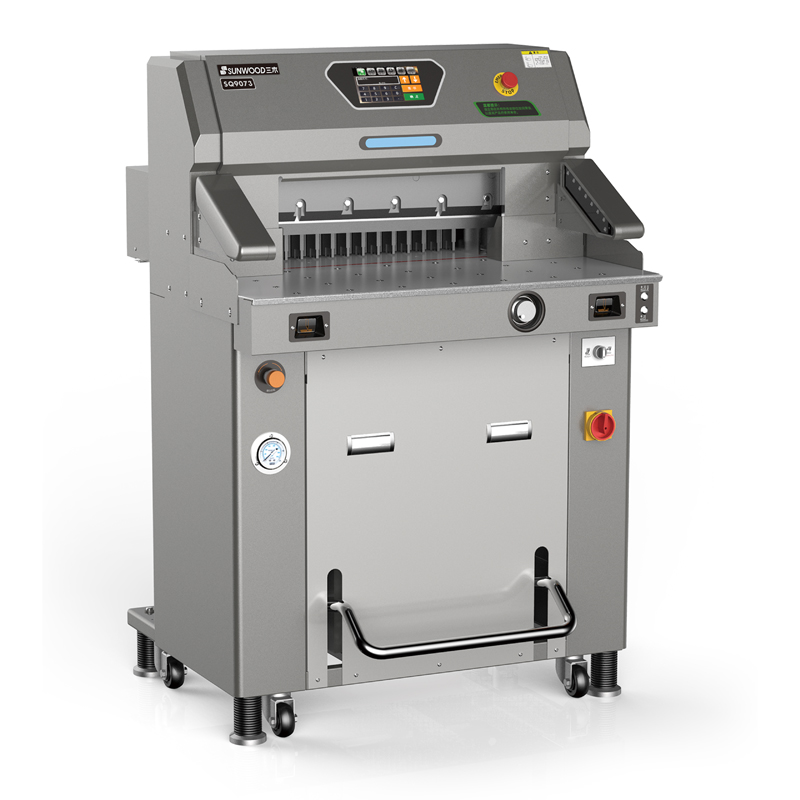 產品詳細介紹液壓動力控制系統,紅外光電安全保護,智能芯片控制,大屏幕觸控面板,降噪設計,機械腳踏設計,不銹鋼滾珠臺面,故障自檢,可設置多種裁切方式。
