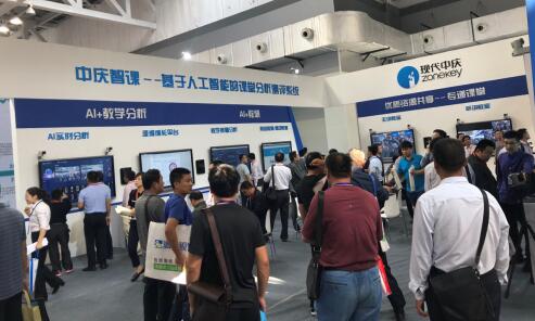 慧享新教育”為主題�,F代中慶攜中慶智課智慧應用、專遞課堂等教裝精品參展,來自省內外的教育領導、專家、一線教師以及廣大教育從業者3萬多人共同參加本次盛會,共享現代教育新成果。