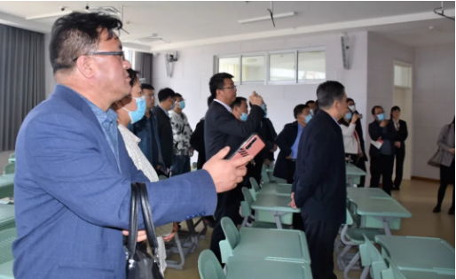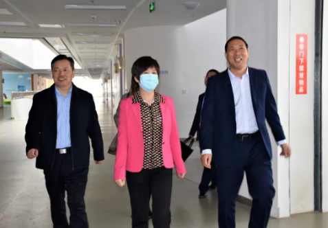 蘭州新區(qū)教育系統(tǒng)曾俊萍局長(zhǎng)一行人與楊世臣校長(zhǎng)親切交談。