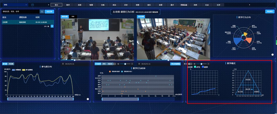 目前,現(xiàn)代中慶基于人工智能與常態(tài)化錄播融合開發(fā)的中慶智課系統(tǒng)和智能研修平臺經(jīng)過了高校論證和專家評審,已經(jīng)具備了有效采集和分析課堂學(xué)情數(shù)據(jù)的能力。具體體現(xiàn)在采集和分析課堂教學(xué)行為數(shù)據(jù),即教師和學(xué)生的9種行為占比和分布,課堂S-T行為圖和課堂類型判定,學(xué)生課堂參與度、專注度曲線,和聽評課結(jié)合的教師能力矩陣等多個方面;同時,數(shù)據(jù)范圍不僅包括課中,還前延到教師備課和磨課的環(huán)節(jié)。