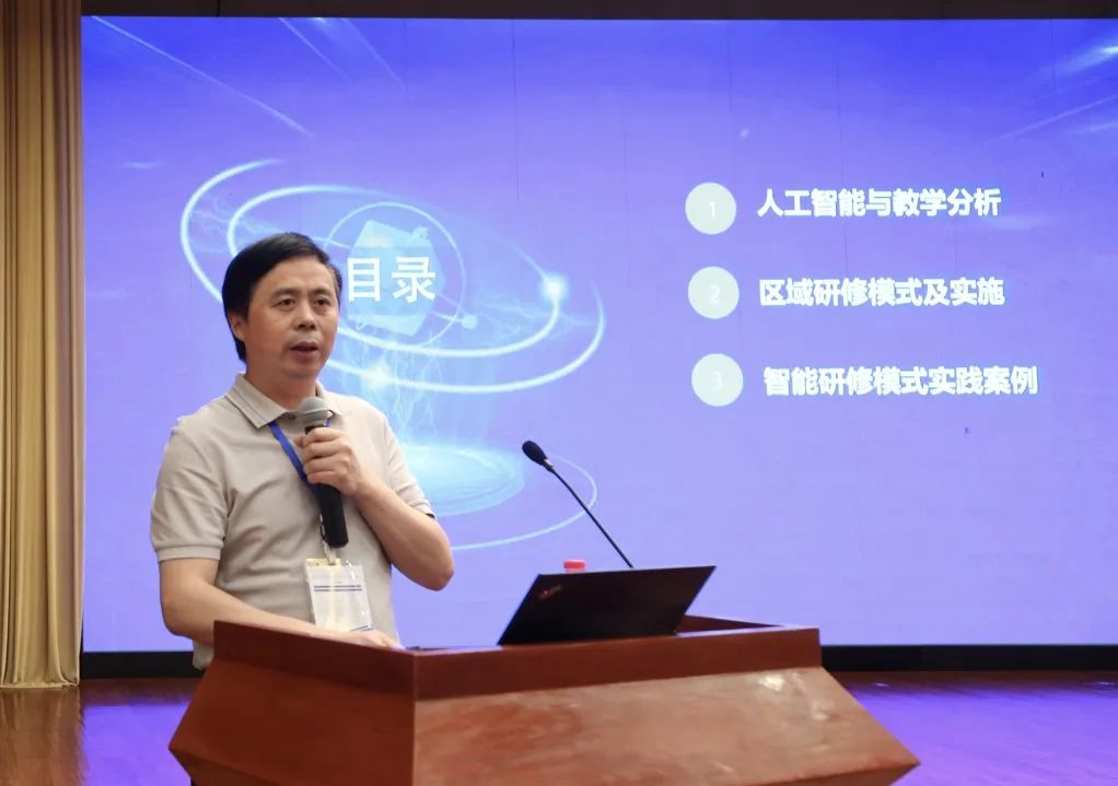 華中師范大學人工智能教育學部副部長、教授、博士生導師,中央電化教育館智能研修平臺應用試點工作專家組組長劉清堂在其報告《智能技術支持的區域教研模式及應用》中從“人工智能與教學分析”“區域研修模式及實施”“區域研修模式實踐案例”三個方面結合智能研修平臺,講解智能技術支持下的區域研修的理論基礎、研修模式、平臺操作及具體案例,遵循“理論-實踐-案例”的思路回答人工智能何以賦能教師專業發展。