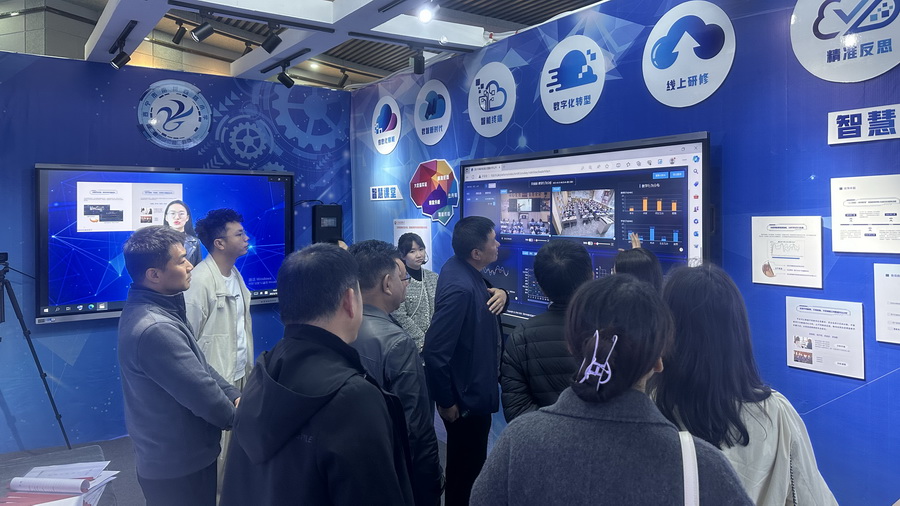 由現代中慶提供技術支持的西寧市南川西路小學智慧教研展區,以“‘智課’驅動精準教學 數據賦能智慧教研”為主題展示了學校基于AI課堂教學數據開展精準教學反思,以及通過備、磨、聽、評、賽模塊開展備教學評一體化的AI精準教研的應用場景。