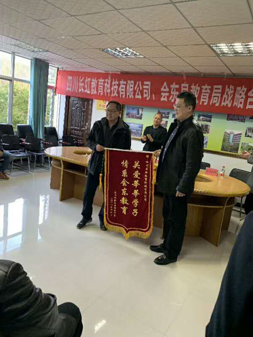 在合作簽約儀式上,長虹教育向涼山州會東縣會東中學捐贈了長虹教育最新開發的遠程互動課堂系統和應對新高考的教務管理系統,現場向會東縣的老師進行了使用、操作的培訓,實現了信息技術與教育教學深度融合。同時,涼山州會東縣會東中學為感謝長虹教育的善舉,向長虹教育贈送了“關愛莘莘學子,情系會東教育”的錦旗。