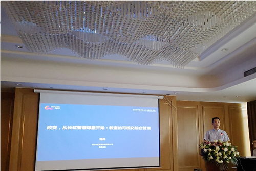 在23日舉辦的 “產學研高峰論壇”中,長虹教育科技有限公司市場總監蔣兵以“改變,從長虹智慧課堂開始:教室的可視化綜合管理“為主題發表了精彩的演講與分享,詳細闡述了長虹教育科技是如何利用可視分析與人工智能技術改變智慧課堂,通過可視化實現教室綜合管理。