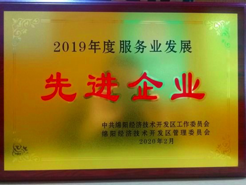 同時被綿陽市經濟技術開發區管理委員會授予“2019年度服務業發展先進企業”、“2019年度創新平臺建設優秀企業”殊榮。