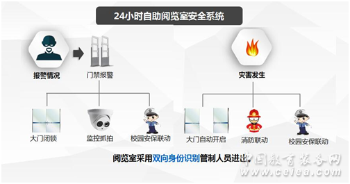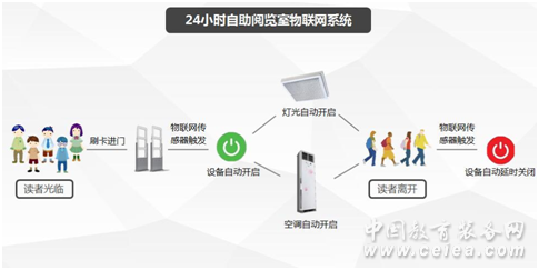 印天24小時自助閱覽室系統由自助借還、自助辦證、智能導航、智能書架、電子閱讀機、門禁聯動、安全門與監控以及閱覽室管理軟件共同組成終端服務系統,彌補了傳統圖書館服務時間和空間限制。