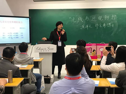 深圳市眼科醫院科研科長,哈佛大學博士后——鄧宏偉博士,作為眼視光醫學界的泰斗就“光線與近視防控”話題發表了演講,她從青少年兒童近視成因的角度,分析一個良好健康的光環境,對孩子防控近視的重要意義。
