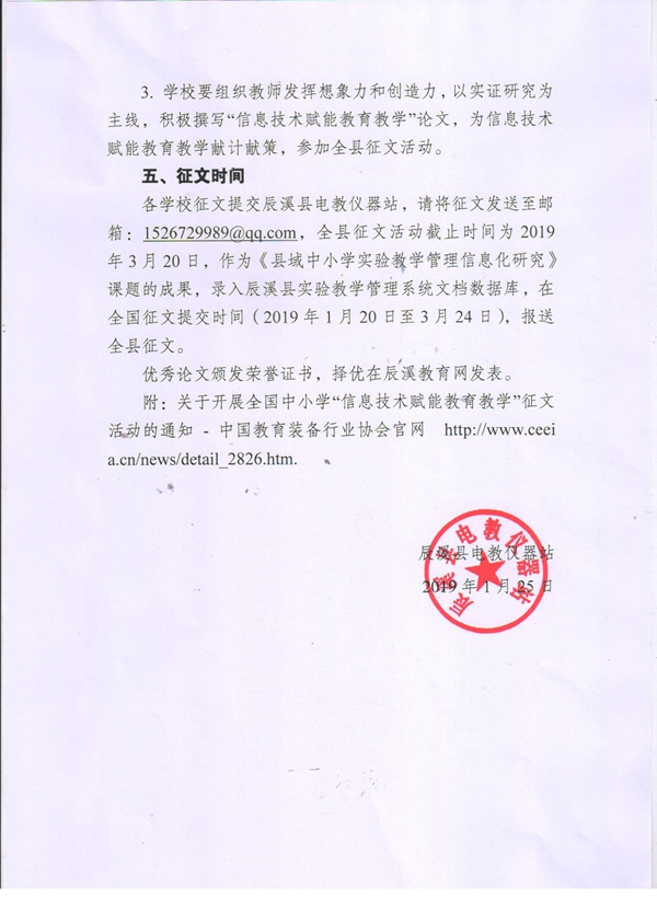 辰溪縣電教儀器站關于組織參加全國中小學“信息技術賦能教育教學”征文活動的通知