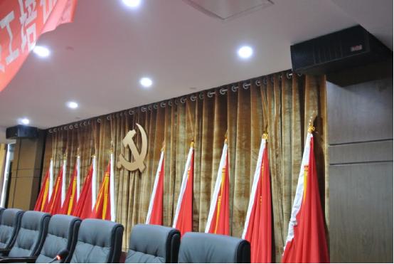 擴聲方面,多功能廳配置的是高精度線性陣列揚聲器系統,音質優美,飽滿,投射精準,整個廳內完全滿足多人會議場景下對聲場演繹的高要求。