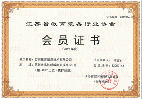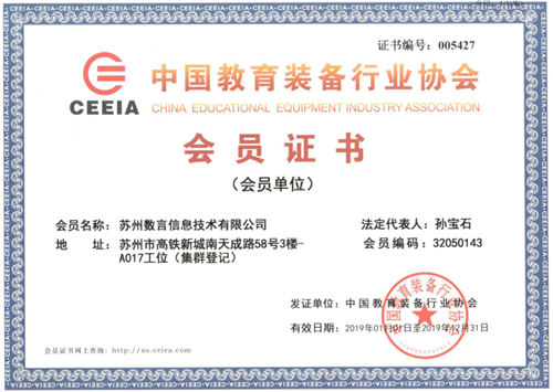 今年,蘇州數(shù)言有幸成為中國教育裝備行業(yè)協(xié)會的一員,共同為教育事業(yè)貢獻(xiàn)出自己的力量,助力中國教育的科學(xué)化,國際化。