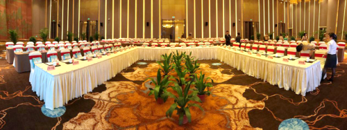 結(jié)合開元酒店的實(shí)際情況,綜合考慮分散式和集中式兩種揚(yáng)聲器布置方式的優(yōu)缺點(diǎn),itc決定在酒店的會(huì)議廳內(nèi)采用一種既分散又相對(duì)集中的新的揚(yáng)聲器布置方式,運(yùn)用了專業(yè)的線陣音箱、返聽音箱等設(shè)備,現(xiàn)場(chǎng)效果達(dá)到語(yǔ)言清晰、無(wú)失真、聲壓余量充分、聲場(chǎng)分布均勻、無(wú)聲反饋嘯叫,聲像定位正確。