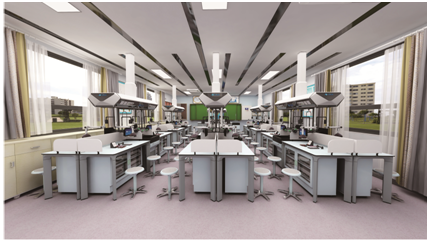 “實驗室模塊化頂裝系統(tǒng)”,頂裝集成、釋放室內空間,滿足實驗室多種布局和教學需求;水、電、風集成供給,簡化實驗室內部設計,施工更便捷;可根據(jù)實際需求加減或更換功能模塊,滿足個性化需求。