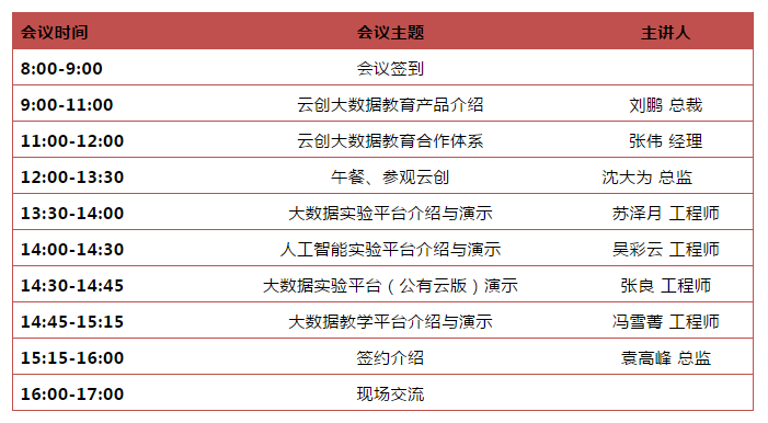 地點:云創大數據培訓基地(南京市白下高新技術產業園中國云計算創新基地旁,從南京南站打車前往會議地點20分鐘左右)