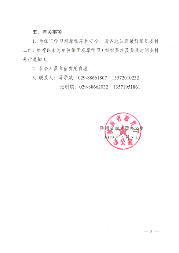 1. 為保證學(xué)習(xí)觀摩秩序和安全,請(qǐng)各地認(rèn)真做好組織安排工作,推薦以市為單位組團(tuán)觀摩學(xué)習(xí)(組織要求及參觀時(shí)間安排另行通知)。