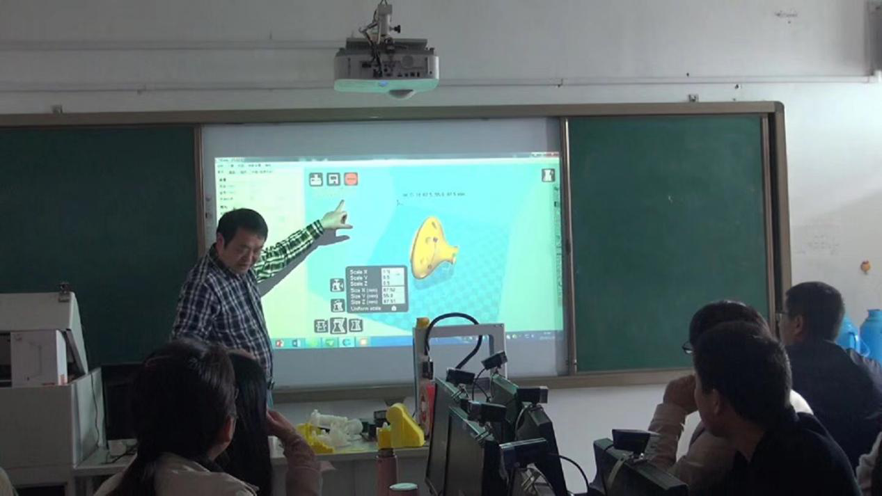 在肥東教育機牽頭下,縣教體局信息中心王主任通過實踐教學與課程輔導相結合的教學方式,對一些學校骨干老師進行3D打印培訓。肥東縣在線課堂的主講教室和接收教室的技術人員、各校即將開設3D創意課程的授課教師共計三十多人參與了培訓。