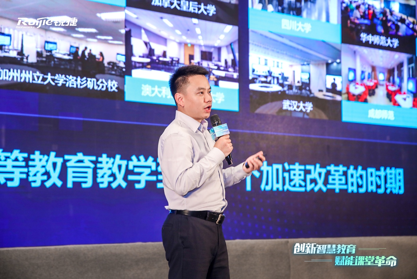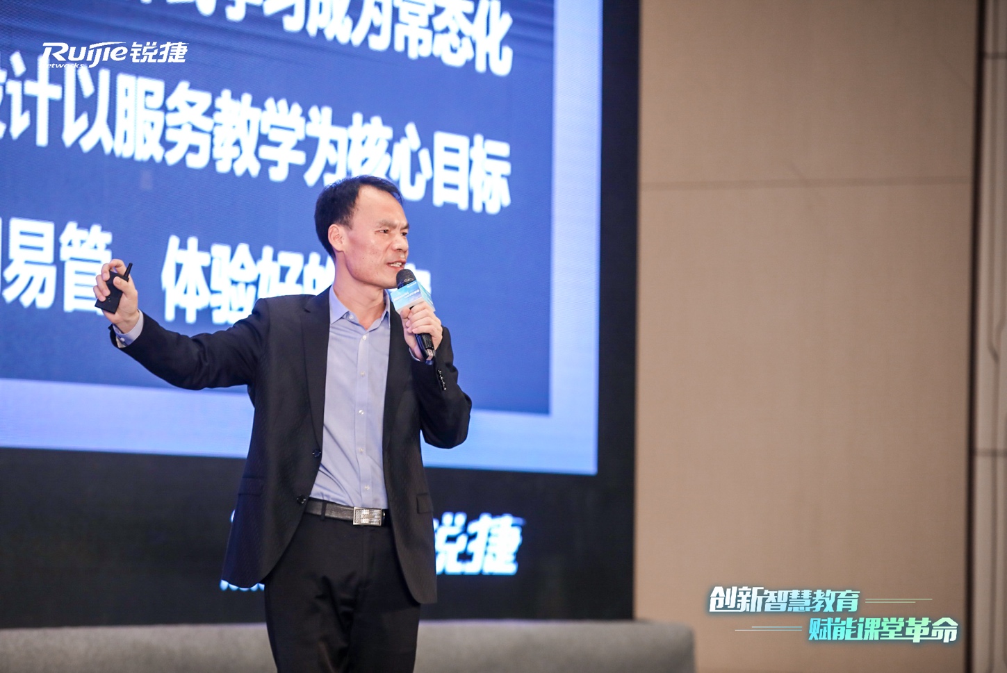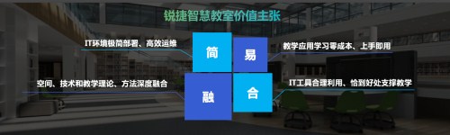 他談到,近年來,銳捷一直堅持“扎根行業、深入場景”的理念,基于教育行業客戶需求和應用特點進行產品創新�!昂�、易、融、合”不僅是這一理念的充分體現,同時也代表了新一代智慧教室的建設思想。
