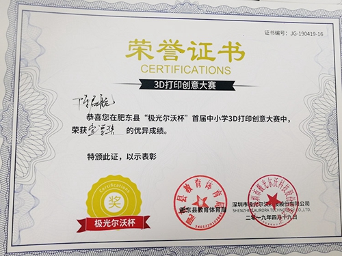 4月19日, 由極光爾沃冠名的3d打印創意大賽在肥東縣教育局信息中心圓滿落幕,這次3d打印創意大賽不僅獲得安徽省和肥東縣政府的高度重視,還獲得更多中小學校的關注。老師和學生們也感受到了科技的神奇魅力,極光爾沃3d打印創意大賽將肥東縣的青少年科技創新工作推上了一個新的臺階。