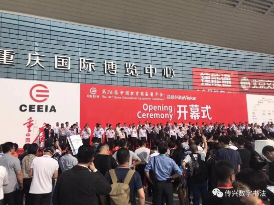 4月26日,第76屆中國教育裝備展示會在重慶國際博覽中心盛大開幕,傳興書法展位人氣爆棚。