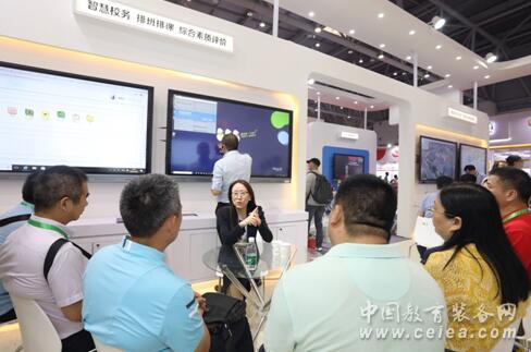 同時,智慧課堂場景同步直播到智慧教育管理展區,參觀者通過大屏隔空觀摩智慧課堂上課場景,領略信息技術與課堂教學的融合創新。該展區呈現的電子班牌、排班選課及綜合素質評價系統也吸引了廣大教育工作者的深入了解、咨詢。