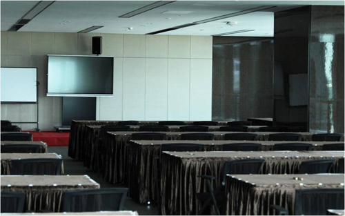 同時為合理化安排會議室資源,針對會議室大小需求問題,我們采用分開廳感應器,聯動中控、云會務,當組合大會議室C中間拉上簾子阻斷光幕時,隔斷閉合時,光幕阻斷,系統判定為會議分割,顯示獨立會議室A和B可預約,組合會議室C顯示鎖定無法預約;而隔斷打開時,光幕聯通,系統判斷為會議分割取消,顯示組合會議室C可預約,獨立會議室A和B顯示鎖定無法預約。實現組合會議室的自由切換。