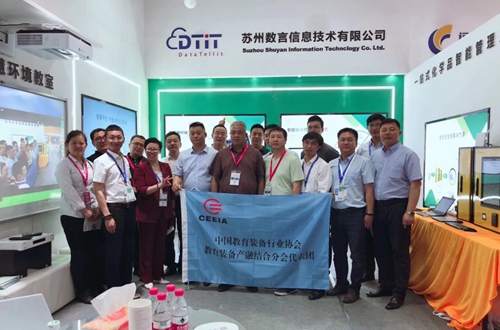 展會期間,中國教育裝備行業協會教育裝備產融結合分會代表團領導也蒞臨數言展位,為數言加油助力!
