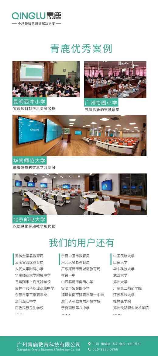 青鹿作為智慧教育信息化整體解決方案提供商參展(展位號40203),我們提供集智慧課堂、智慧錄播及創客課堂為一體的智慧教學環境,致力于打造以教學為核心的智慧校園融合解決方案,青鹿將在本次展會中展示青鹿盒子、青鹿小盒子、云鏡攝像機、研討型智慧教室解決方案及青鹿普教業務的部分經典案例。