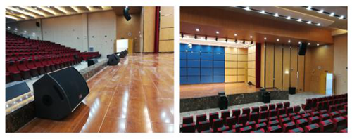 該項目報告廳,觀眾容納量超800余人,對聲場的環境設計十分重要,如廳內聲壓分布均勻度、音頻質量、系統穩定性有著高要求。現代的多功能報告廳既用于語言類擴聲使用,更兼具舞臺演出音頻擴聲用途,在擴聲系統設計時,依據場地深度、寬度、高度對擴聲設備的選配、布局安裝作了科學合理的計算分析。