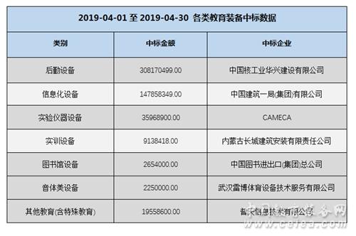 附:2019年4月已有教育裝備類別數據中累積最高中標金額及其所屬企業。
