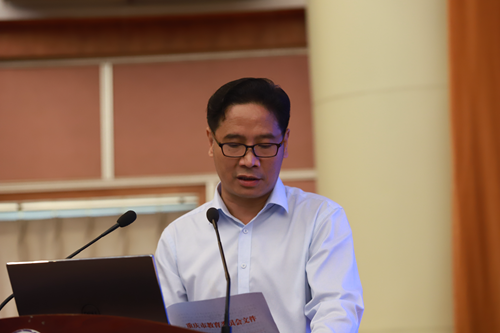 市委教育工委委員、市教委副主任劉宴兵做了題為《突出質量、促進公平,努力提升重慶高校一流課程建設新水平》的講話,他對高等教育事業發展時代新特征、“金課”建設的豐富內涵以及金課的建、用、學、管各環節進行了全面闡釋,并要求各高校要站在新的歷史起點,以金課建設為契機,支撐引領高等教育現代化發展,推動高等教育教學理念更新、模式變革、體系重構,不斷提升高等教育質量,寫好重慶高等教育“奮進之筆”。為建設學習型社會、學習型政黨、學習型強國積極發出重慶聲音,貢獻重慶智慧和重慶方案。