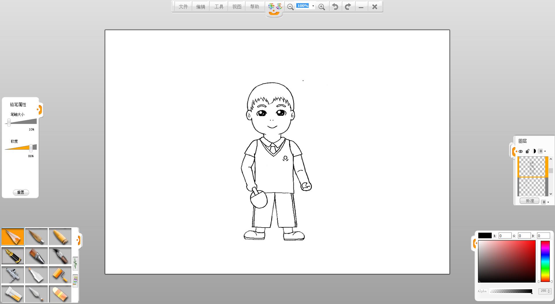 6.使用顯示/隱藏圖層按鈕,將先畫好的男孩隱藏后,新建圖層;在畫面中間偏左的位置繪制一個拿著禮物的小男孩形象。
