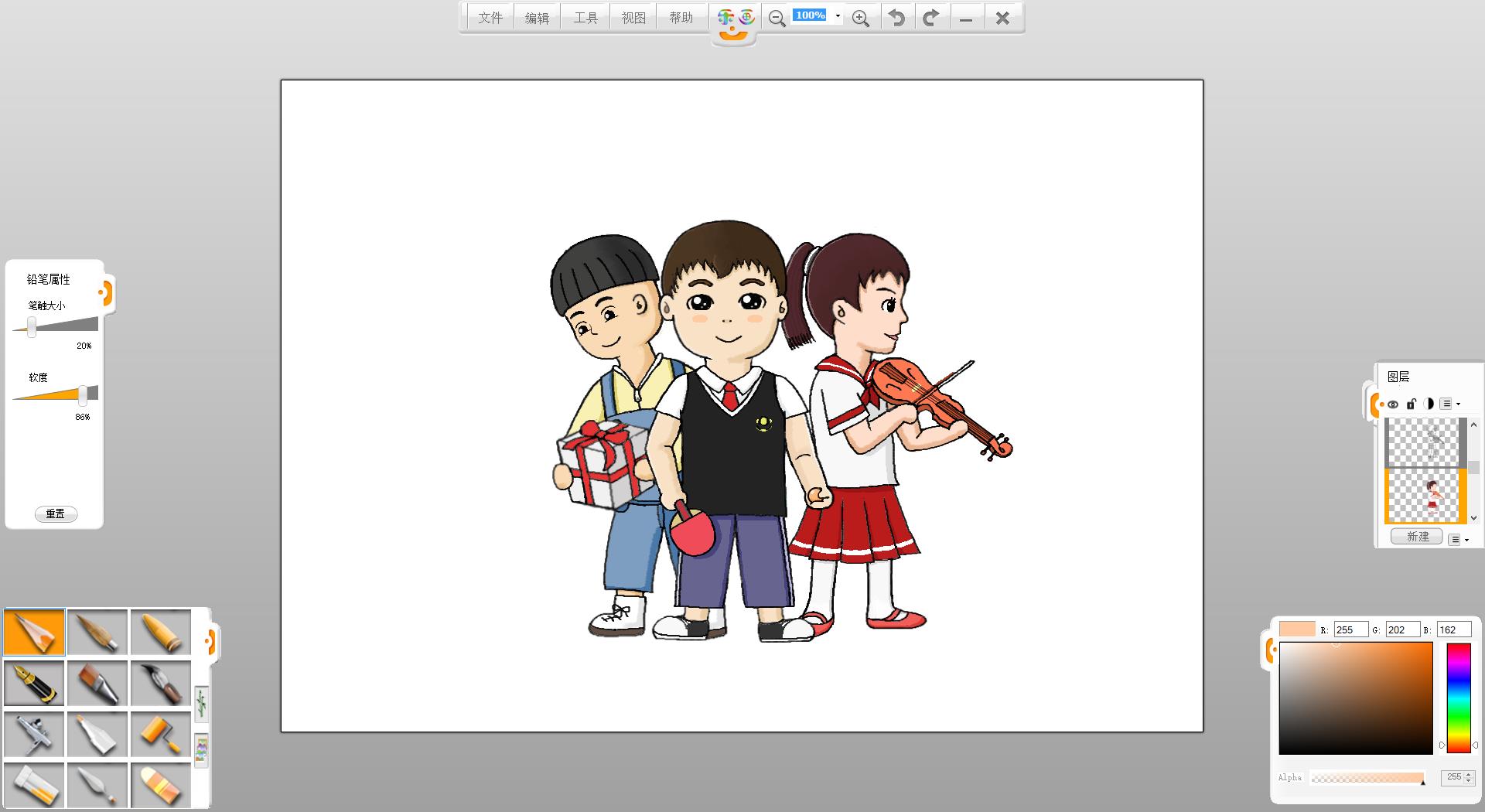 7.使用相同的方法在畫面中間偏右的位置繪制一個拉小提琴的小女孩形象。