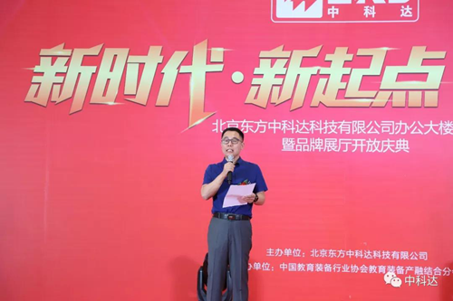 2019年5月30日,北京東方中科達(dá)科技有限公司辦公大樓啟用暨品牌展廳開放慶典在中科達(dá)天津生產(chǎn)基地隆重舉行。教育部關(guān)心下一代工作委員會常務(wù)副主任、中國教育裝備行業(yè)協(xié)會會長王富,北京市高等教育學(xué)會會長、北京市教育委員會原主任線聯(lián)平,北京教育裝備行業(yè)協(xié)會會長柴旭津等行業(yè)領(lǐng)導(dǎo),以及來自全國各地的300余名企業(yè)家蒞臨現(xiàn)場,共賀教育裝備產(chǎn)融結(jié)合新時代,開啟中科達(dá)發(fā)展新未來。