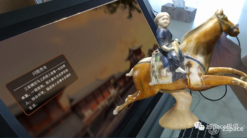 有別于以往在“紙面上”的學(xué)習(xí),極倍zSpace與中教啟星一起,將博物館中的文物搬到課堂中來,為學(xué)生多方位地進(jìn)行展示。仰仗于極倍zSpace的虛擬現(xiàn)實(shí)及增強(qiáng)現(xiàn)實(shí)技術(shù)算法,文物栩栩如生地呈現(xiàn)在學(xué)生面前,學(xué)生可以通過手中的六維度觸控筆進(jìn)行多角度的旋轉(zhuǎn)和放大,仔細(xì)觀察每一個(gè)細(xì)節(jié),進(jìn)行探究性學(xué)習(xí),激發(fā)更多思考。