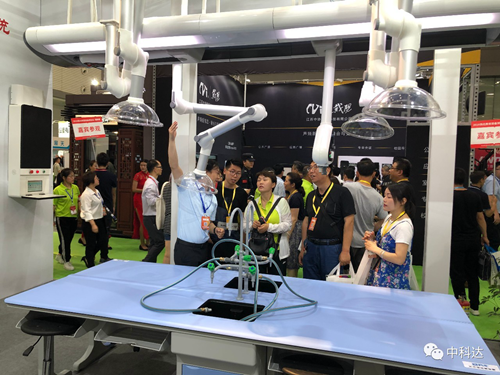 ▲中科達總經理朱建武、副總經理趙建敏向觀眾介紹陶瓷臺面實驗臺