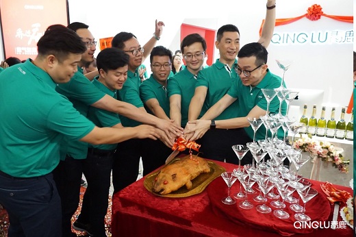 燈光、紅毯、音樂、彩帶萬事具備,全體青鹿人聚集在新辦公樓大廳,準備迎接揭牌這一歷史性時刻。